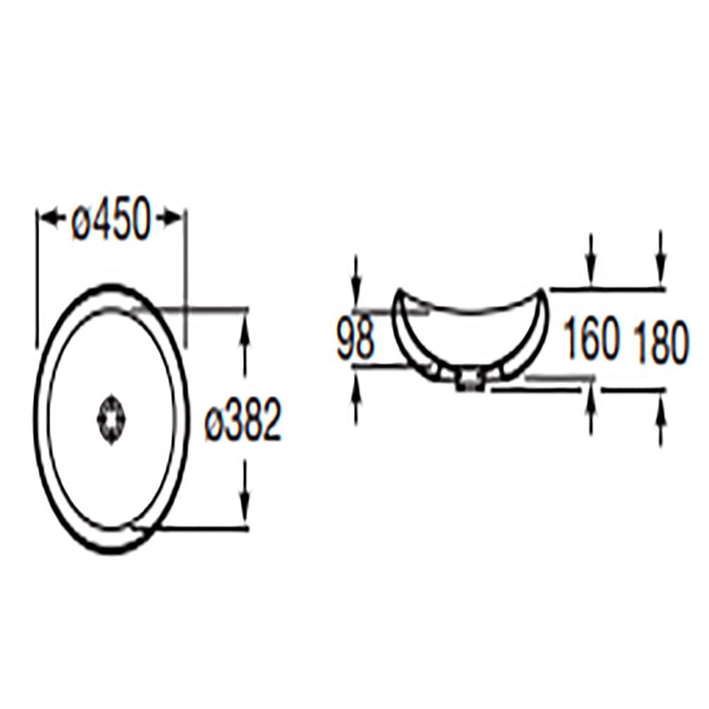 - Diseño: Redondo, sin orificio para grifería.